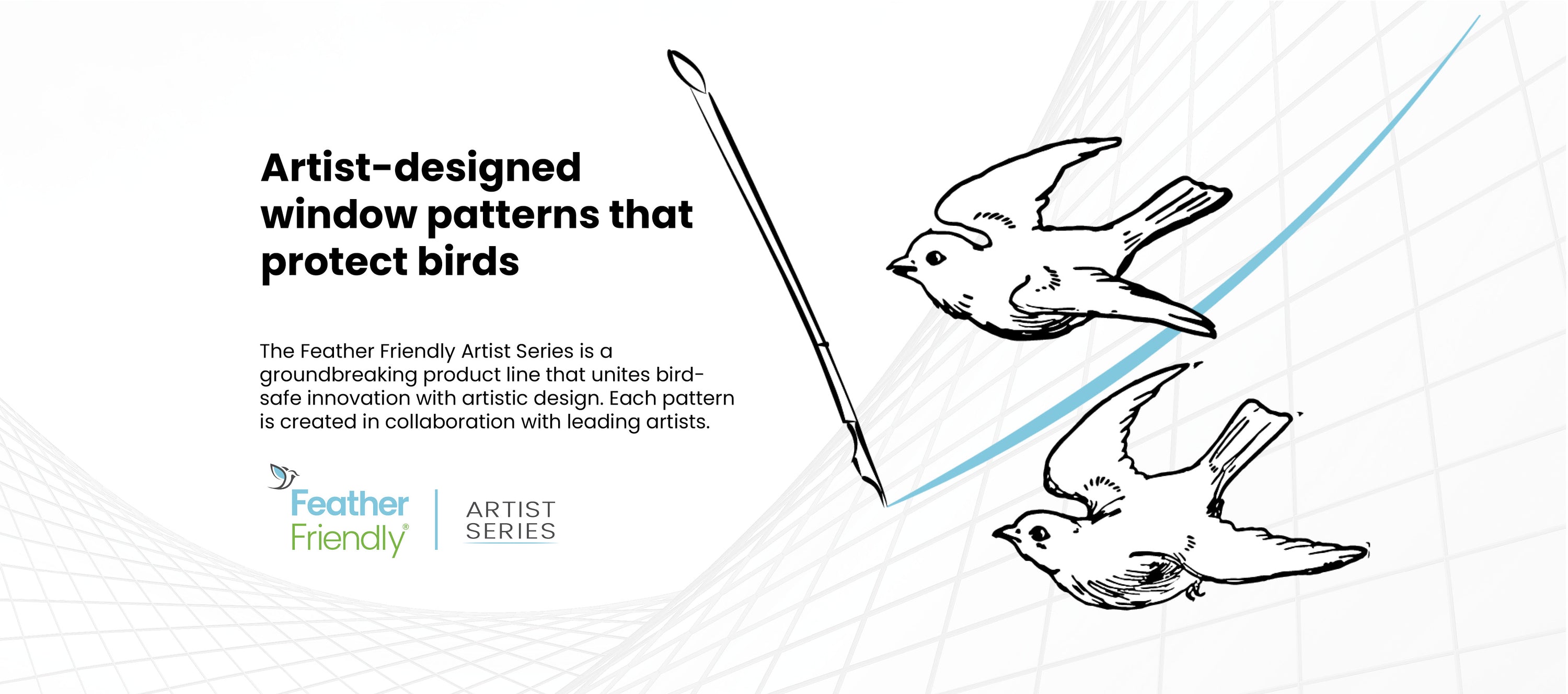 The Feather Friendly Artist Series is a groundbreaking product line that unites bird-safe innovation with artistic design. Each pattern is created in collaboration with leading artists, ensuring windows remain both beautiful and life-saving