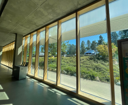 We are a trusted choice for preventing bird collisions on campus. Our markers are highly effective in making glass visible to birds and avoiding deadly collisions without compromising a building’s aesthetics or views inside and out. Unlike full film, only the markers remain on the glass, covering approximately 8% of the total glass area.