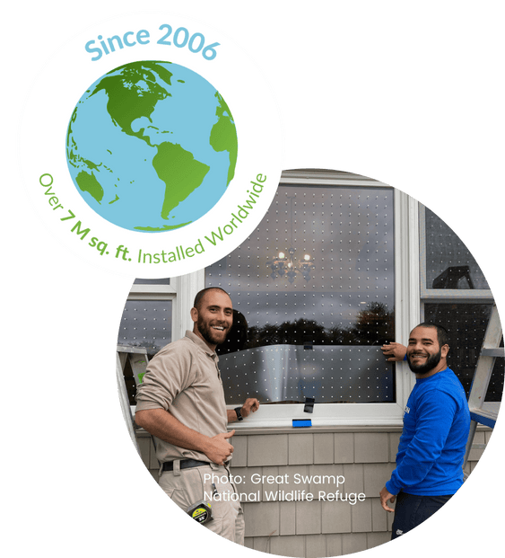 Since 2006 we have installed over 7M sq ft of product worldwide with a durability and longevity of 15+ years. Our products are tested and approved by the American Bird Conservancy and Dr. Daniel Klem Jr., and supported by the National Audubon Society, FLAP Canada and many others.